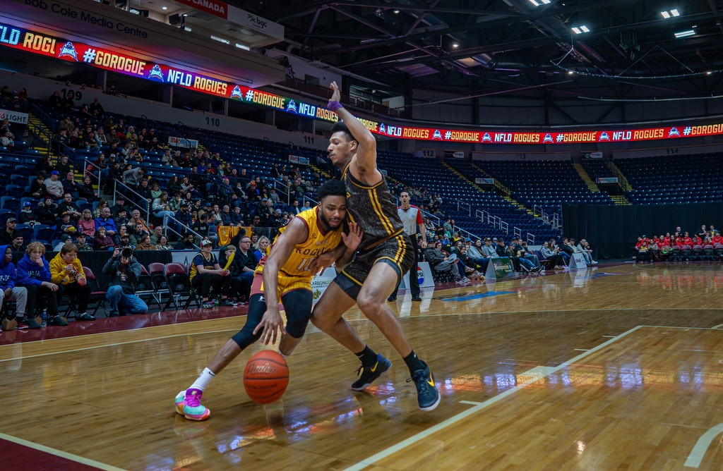 NL Rogues guard Dedric Boyd battles for space on the court during Nursing Appreciation Night, bringing intensity and skill to the game!